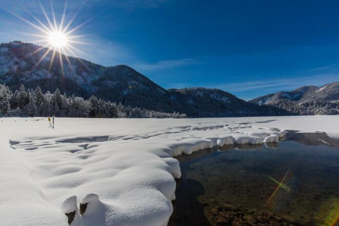Die 3-Seen-Loipe ist landschaftlich das Highlight der Region! Willkommen in Klein-Kanada: Glitzernder Schnee, Wälder, Seen in denen sich Berge und Sonne spiegeln und dazu die schneesicherste Loipe Ruhpoldings.