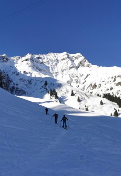 Der spitzgiebelige Kirchturm mit schlankem Kirchenschiff auf grünem Wiesengrund, umrahmt von Tobeln inmitten des weiten Talkessels von Schröcken zeichnet ein wahres Bild der Idylle. Nichts erinnert mehr an die Katastrophe von 1863, als das bereits 1639 eingeweihte, in Folge mehrfach erweiterte und restaurierte Gotteshaus binnen Kurzem in Schutt und Asche fiel. Ausgegangen war die Feuersbrunst vom Gasthof zum „Ochsen“, wobei auch das benachbarte Schul- und Mesnerhaus sowie der Pfarrhof ein Raub der Flammen wurden. Mit Walser Handwerksgeschick und Tatkraft erstanden sämtliche Gebäude rasch wieder, und 1867 wurde die Pfarrkirche „Unsere Liebe Frau Mariä“ feierlich neu eingeweiht. Nicht weniger prächtig als der Vorgänger lädt der reich bestückte Sakralbau heute zur ausführlichen Besichtigung.