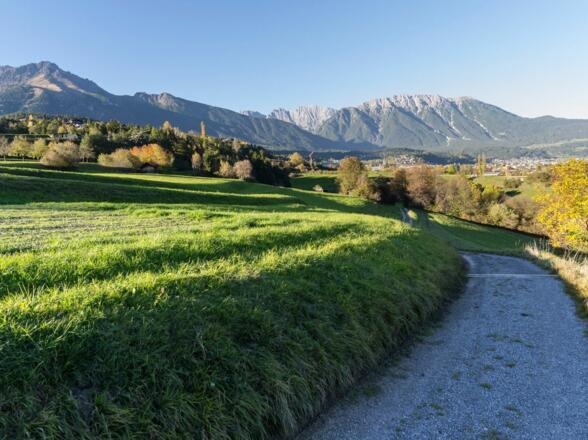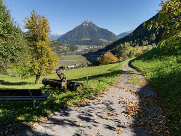 Von Imsterberg folgt man der Straße wieder ein kurzes Stück zurück bis nach Endsfeld. Dort beginnt ein Wiesen- und Waldweg der direkt zur Imsterberger Aussichtsplattform führt. Halten Sie dort inne und genießen Sie den sensationellen Blick ins Gurgltal. Nun geht es über Serpentinen hinunter in die Imsterau bis zum Bahnhof. In der ersten Kurve links auf die Allee einbiegen und dem Wegverlauf direkt am Inn bis zur Brücke folgen. Im Talkessel überqueren Sie die Brücke und folgen dem Straßenverlauf in Richtung Gschnallenhöfe bis zur Bundesstraße. Von dort führt ein Waldweg bis zum Imster Ortsteil Gunglgrün und zur Kapelle Maria Schnee. Es lohnt sich einen Blick in die Kapelle zu werfen, die für Taufen und kleine Hochzeiten bei den Einheimischen sehr beliebt ist. Hier folgt man der asphaltierten Straße am Waldspielplatz vorbei bis nach Hoch-Imst. Von dort geht´s durch die wildromantischen Rosengartenschlucht bis ins Stadtzentrum von Imst.