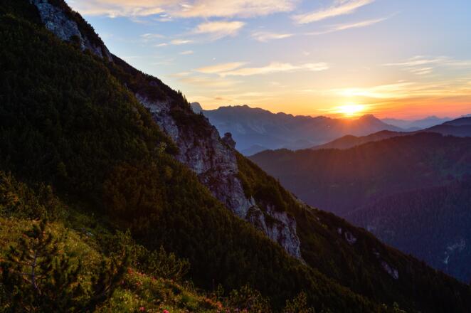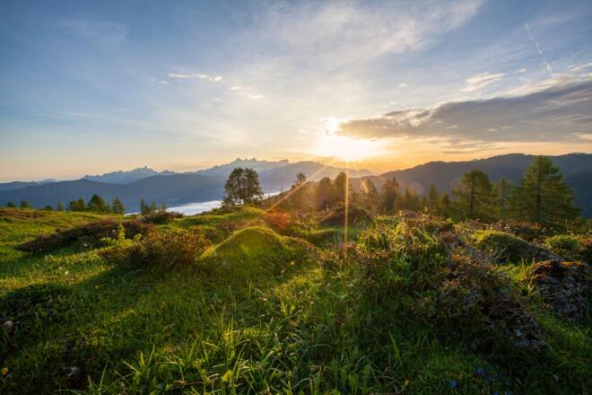 Auf dem Gipfel des Lackenkogels, dem "Hausberg" von Altenmarkt, eröffnet sich ein wunderschöner Rundblick auf die umliegende Bergwelt: Hoher Dachstein - Bischofsmütze, Hochkönig, Tennengebirge und Hohe Tauern mit dem Großglockner. Am Höhensteig nach Zauchensee zeigt sich eine einzigartige Alpenflora.