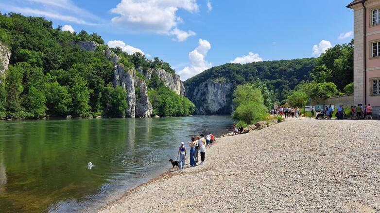 In Kelheim fahren wir zur Schiffsanlegestelle und mit dem Schiff durch den Donaudurchbruch nach Weltenburg. Es gibt die Möglichkeit, mit dem Schiff wieder zurück zu fahren, wir entscheiden uns für das Rad.