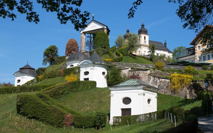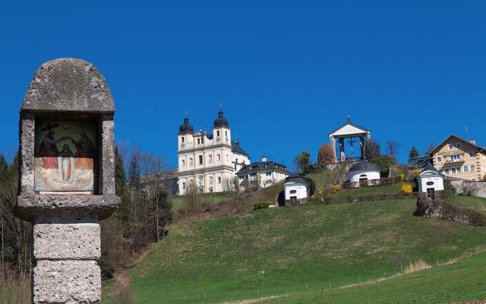 Auf der Suche nach Beschaulichkeit und Stille eignet sich ein Ausflug nach Maria Plain wie kaum ein anderes Ziel im Salzburger Land. Die Wanderung auf den 560 Meter hohen Plainberg geht an der Plainbrücke im Stadtteil Itzling los. Steinerne Bildstöcke aus der Barockzeit säumen den Kreuzweg bis zur als Naturdenkmal gekennzeichneten Baumgruppe Maria Plain. Hier beginnt auf freier Wiese der im 17. Jahrhundert erbaute Kalvarienberg. Der geschotterte Weg führt über Treppen an vier Kapellen mit lebensgroßen Nachbildungen der Passion Christi vorbei zur Kreuzigungsgruppe. Die barocke Basilica minor Maria Plain zählt zu den meistbesuchten Wallfahrtskirchen Mitteleuropas. Sie beherbergt wertvolle Werke bekannter Künstler wie Kremser Schmidt, Franz de Neve, Thomas Schwanthaler und Christoph Lederwasch. Das von einem unbekannten Maler stammende Gnadenbild Maria Trost war aufgrund von Gebetserhörungen die Ursache für die Anziehungskraft der Kirche. Hartnäckig hält sich das Gerücht, dass Mozart seine berühmte Krönungsmesse für diesen Ort geschrieben hat. Noch immer ist sie hier regelmäßig zu hören: Jedes Jahr erklingt die Messe am fünften und am sechsten Sonntag nach Pfingsten in Maria Plain. Der Eintritt ist frei. Deftiges für Wallfahrer gibt es in der Jausenstation oder im Gasthof Maria Plain.