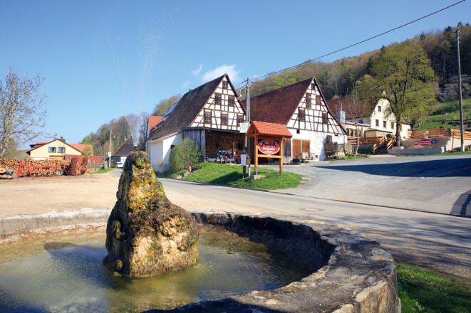 Wandern vor, durch und auf dem Trauf der Fränkischen Alb, dem „Hersbrucker Gebirg“ wie man früher die Region im charaktervollen Schichtstufenland bezeichnete. Die archäologischen Berührungspunkte sind Hügelgräber aus der Hallstattzeit vor rund 2.700 Jahren, ein 1.000 Jahre alter und 200 m langer Festungswall im Wald, ein spätmittelalterlicher Kalkofen und die Glatzensteinhöhle. Nicht zu vergessen die über 500 Jahre alten Lindenbäume in Kersbach im Biergarten des ehemaligen Gasthauses Linde. Insgesamt ein vergnügliches Wanderstück, das sich mit dem stilisierten Speikerner Reiterlein auch ein authentisches Markierungszeichen leistet. Die tönerne Grabbeilage eines Kelten wurde ganz in der Nähe gefunden. Hinauf auf den Albtrauf, entlang an der steilen Traufkante, vorbei an monumentalen Kalksteinriffen, durch lichten Buchenwald und immer wieder garniert mit glänzenden Aussichten. Der Aussichtsbalkon am Glatzenstein ist der Höhepunkt für „Fernseher“ und „Weitblicker“. Traumhaft. Vor dem Glatzenstein bietet sich der Schlenker, anfangs Richtung Weißenbach, zum Kalkofen an. Von hier erreicht man nach kurzem, aber knackigem Aufstieg den Glatzenstein mit seinem Gipfelkreuz und einer herrlich platzierten Aussichtsbank. Einkehr in Weißenbach (auf die Öffnungszeiten achten), Abstieg nach Kersbach mit dem Besuch der beiden Linden, die um 1648 als Friedenslinden gepflanzt wurden, und durch Wiesen und Streuobst zurück zum Wanderparkplatz zwischen Speikern und Kersbach. Starten kann man natürlich auch in Weißenbach oder in Kersbach.