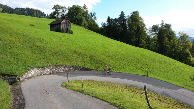 Auf dem Radweg bis nach Bersbuch zum Kreisverkehr. Abzweigen Richtung Schwarzenberg, durch das Dorfzentrum durchfahren vorbei am Hotel Hirschen und nach ca. 300m rechts die schmale Straße einbiegen. Es folgt ein kurvenreicher, teilweise auch steiler Anstieg zum Ortsteil Brittenberg. Das Sträßchen ist kaum befahren und die Ausblicke atemberaubend. Beim Brunnen rechts abzweigen auf einem Plateau vorfahren und immer rechts halten. Es folgt die Abfahrt über eine kleine Straße bis zur Einfahrt in die Hauptstraße. Hier links abzweigen, dem Straßenverlauf folgend bis nach Egg. Bei der Kreuzung die Straße queren, 400m geradeaus fahren und dann wieder rechts abzweigen zum Radweg Bregenzerwald. Dem Radweg entlang bis nach Bezau fahren, dort abzweigen Richtung Reuthe und Bizau. Am Ortsende von Bizau startet der ca. 3 km lange Anstieg zur Schnepfegg, der zu Beginn steile Passagen aufweist. Auf der Schnepfegg unbedingt das herrliche Panorama genießen. Es folgt aufgrund der teilweise schmalen Straße eine anspruchsvolle Abfahrt nach Schnepfau. Auf dem Radweg wieder zurück nach Au-Schoppernau.