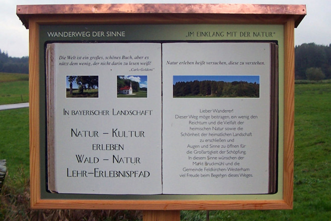 Im Einklang mit der Natur, so der Wille der Initiatoren, soll dieser Weg dazu beitragen, den Reichtum und die Vielfalt der heimischen Natur und die Schönheit der heimatlichen Landschaft zu erschließen. Wie das Mangfalltal von der Eiszeit geformt wurde kann der interessierte Wanderer ebenso in Erfahrung bringen wie Geschichtliches über Flurdenkmäler, Feld- und Wegkreuze, Bildstöcke und Marterl. Die Vielfalt unserer heimischen Wälder wird im Verlauf des Weges in Wort und Bild vorgestellt und man kann sich über das „Ökosystem Wald“ als Erholungsraum, Wasserspeicher, Klimafaktor und Lebensraum informieren.