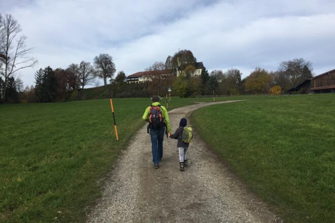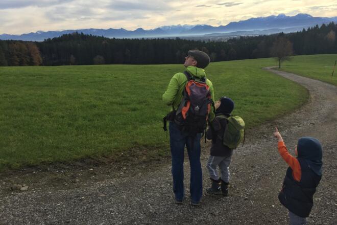 Der „Wanderweg der Sinne“ ist ein Lehrpfad und Kreuzweg bei Bruckmühl mit unglaublicher Aussicht auf die Bergkette von Berchtesgaden bis Karwendel und für die ganze Familie geeignet.