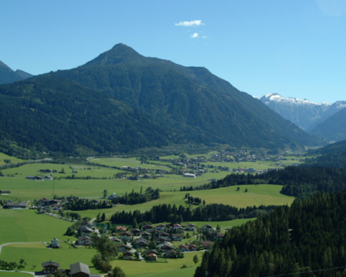 Vom Aussichtspunkt Aigenberg hat man einen grandiosen Ausblick auf das gesamte obere Ennstal, von Flachau über Altenmarkt und Radstadt bis zum Dachsteinmassiv.
