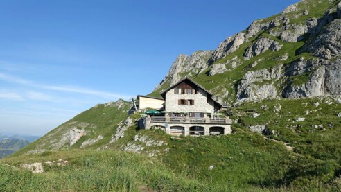 Die Hütte am Fuße des Aggensteins bietet seinen Gästen auf 1792 Metern Höhe einen wunderbaren Ausblick auf die umliegende und bemerkenswerte Bergwelt. Außerdem bietet das Haus seinen Gästen eine große Sonnenterrasse. Übernachtungen sind ebenfalls möglich.