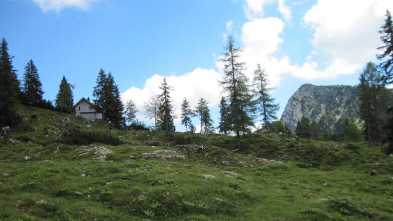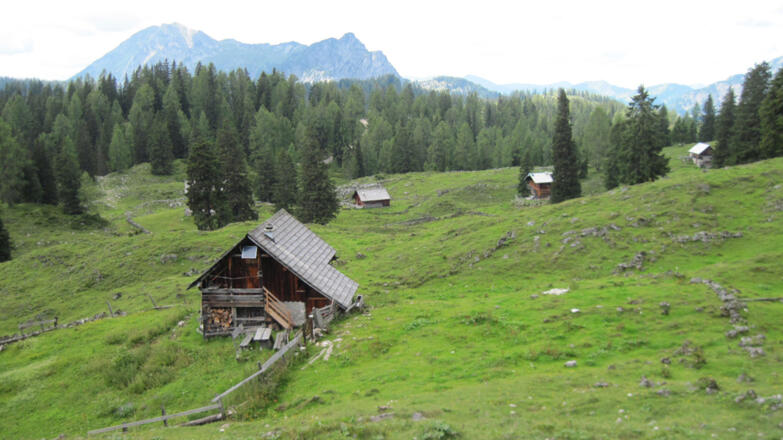 Durch etwas flacheres Waldgelände vorbei und bald nach rechts zu einem Aussichtspunkt (1.362 m). Links bleibend auf einem neuen, nur sanft ansteigenden Weg durch die Südhänge des Feuerkogels zur urigen Almhütte auf der Katrinalm (1.396 m), die knapp unterhalb der Seilbahn-Bergstation steht. Herrlicher Blick nach Süden zum Hallstätter See und zum Dachsteingebirge! 3:00 h