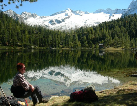 Wir starten mit dem Wandertaxi ins Kötschachtal 1066 m, weiter gehts den Luis Trenker Weg vorbei an der Himmerwandhütte, dann rechts über den Kötschachbach am Wasserfall vorbei. Entlang des Reedgraben steigen wir bergan bis zum Kohlplatzl 1549 m, noch ca 1 Std. bis zum Reedsee 1831 m. Die Bäume und Berge spiegeln sich auf der Wasseroberfläche. Nach einer Rast geht's vorbei am Seekar Windschursee zur Palfner Scharte 2321 m zum Palfner See 2074 m über den Weg 524A und 527 zu Tonis Almgasthaus 1954 m bewirtschaftet mit der Sesselbahn ins Tal 1100 m mit dem Wander Postbus zurück ins Wanderhotel Zum Stern 875 m.