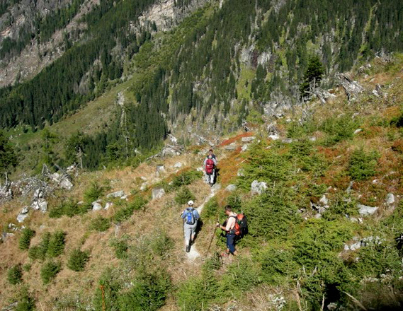 Anspruchsvolle Tour durch den Hochwald zum Reedsse 1831 m (herrliche Talkessel ) zum Windschursee l zur Palfenerscharte 2321 m und Palfnersee, weiter den Weg 524 A und 527 zu Toni's Alpengasthaus (bewirtschaftet) mit Graukogellift ins Tal Postwanderbusi zurück ins Wanderhotel Zum Stern.