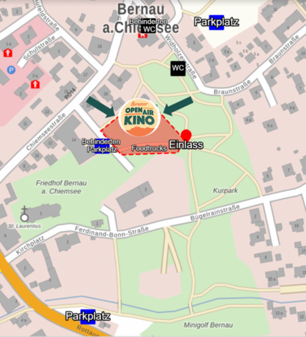 Für Picknickfeeling im Bernauer Kurpark sorgen verschiedene Foodtrucks, die die Gäste mit allerlei kulinarischen Schmankerln vor und während der Vorführung verwöhnen. Das Angebot reicht von Steckerlfisch, Steaksemmeln über Burger bis hin zu Bier und Cocktails.