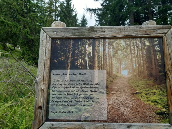 De lokale dichter Sepp Gruber laat met zijn gedichten mijmeren over Gods wonderlijke natuur. Als je er oog voor hebt, op dit vaak door boomwortels geteisterd pad.