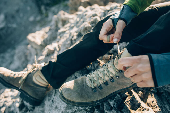Gutes Schuhwerk (knöchelhoch, Profilsohle), Regenschutz, Lech Card und Busfahrplan.