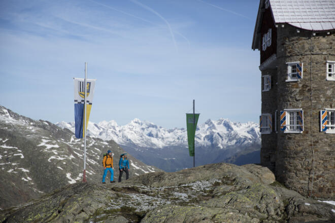 Von der Hütte aus führt ein schöner Wanderweg hinauf zur Siegerlandhütte. Von Siegerland überquert man den Weg übers Gamsplatzl zur markant gelegenen Hildesheimer Hütte.