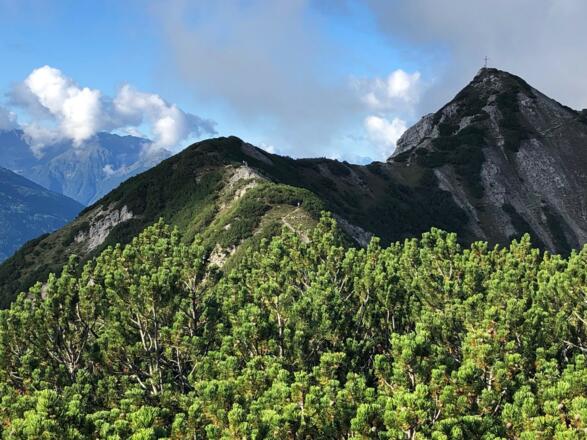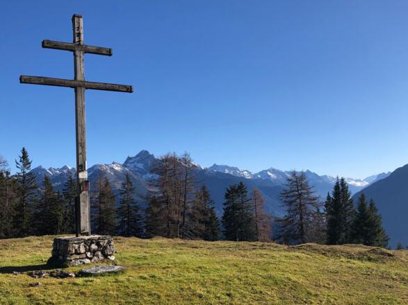 Das beeindruckende Tschirgantmassiv ist ein Highlight für jeden Wanderer. Östlich des Tschirgants befindet sich das Ziel dieser Tour, das Haiminger Kreuz. Man startet auf der Nordseite des Berges in Strad. Dort beginnt die Tour mit dem Mountainbike und es gilt eine über 9 km lange Auffahrt, durchwegs steile 1000 hm, zu bewältigen. Kurz vor der Haiminger Alm (1786 m) wird der Weg etwas flacher und man kann sich wieder etwas erholen bis man schließlich die idyllische und herrlich gelegene Alm erreicht. Hier ist nun Endstation für das Bike. Bitte achtet beim Absperren des Bikes, dass kein Weg versperrt wird. Nach einem kurzen Zwischenstopp in der Alm geht es zu Fuß weiter. Zwischen Latschen wandert man zuerst noch etwas steiler bergauf, bis man zu einer angenehmen Querung auf dem Bergrücken gelangt, mit beeindruckendem Panorama. Der letzte Teil bis hin zum Gipfel wird wieder steiler und exponierter. Oben angelangt kann man die herrliche Aussicht über das Inntal bis hinein ins Ötztal bis hin zum Timmelsjoch genieße.