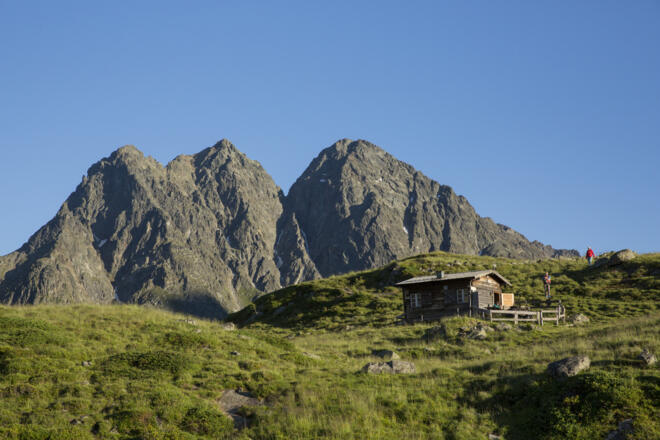 Oberhalb der Waldgrenze steht das wunderschön gelegene Hahlkoglhaus – über ebene Moosböden führt der Weg dann direkt ans Gipfelkreuz zum Hahlkogl. Die letzten paar Meter ist der Weg etwas ausgesetzt und es erfordert Schwindelfreiheit.