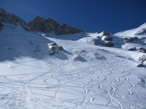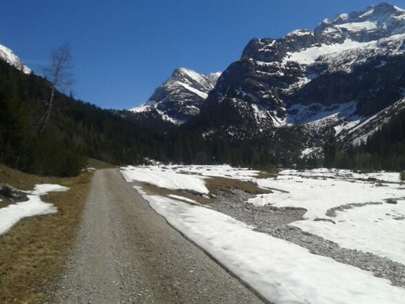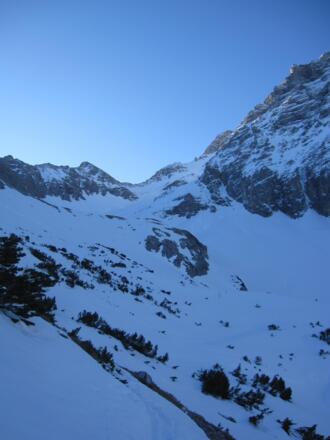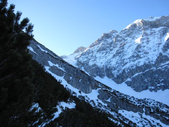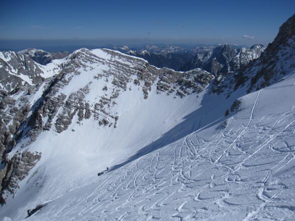 Der Frühjahrsklassiker schlechthin im Karwendel, wenn der Forstweg ab ca. Mitte April schneefrei ist und mit dem Fahrrad und Skitourenausrüstung meist bis zur Brücke unterhalb dem Karwendelhaus gefahren werden kann. Als anstrengende und anspruchsvolle Tagestour mit sehr frühem Aufstehen oder bisschen entspannter mit Übernachtung im Winterraum des Karwendelhauses.