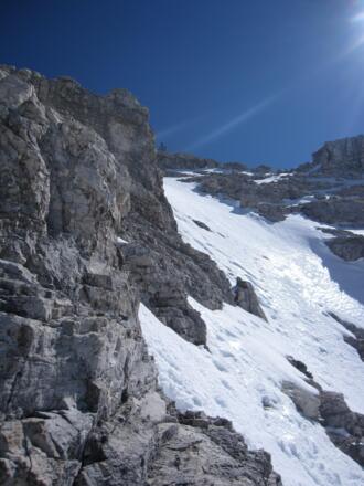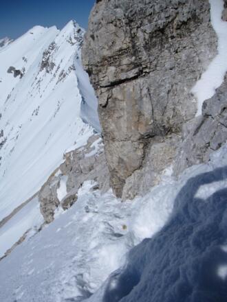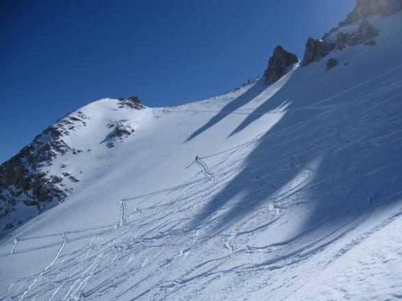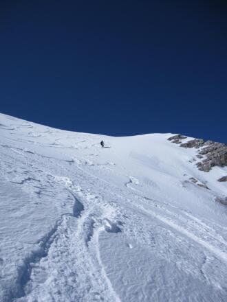 Eine anspruchsvolle Skitour die sichere Verhältnisse, im oberen Teil ausgesetzt ist und Trittsicherheit (je nach Bedingungen auch mit Steigeisen) verlangt.