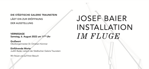 Am Samstag, 6. August, um 11 Uhr wird die Installation „Im Fluge“ im Beisein des Künstlers Josef Baier zum ersten Mal in Gang gesetzt. Es wird eine Premiere sein, denn aufgrund der Ausmaße der Rauminstallation waren Probedurchläufe nur bedingt und teilweise möglich. Dies entspricht dem künstlerischen Selbstverständnis von Josef Baier, der in seinem umfangreichen Werk immer wieder das Experiment sucht und neben allen fundierten mathematischen und physikalischen Berechnungen, die seinen komplizierten Konstruktionen zugrunde liegen, auch die Unberechenbarkeit als eine unkalkulierbare Größe in seine Kunst integriert. Das Grußwort bei der Eröffnung spricht Oberbürgermeister Dr. Christian Hümmer, die einführenden Worte Judith Bader, Leiterin der Städtischen Galerie.