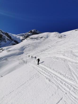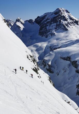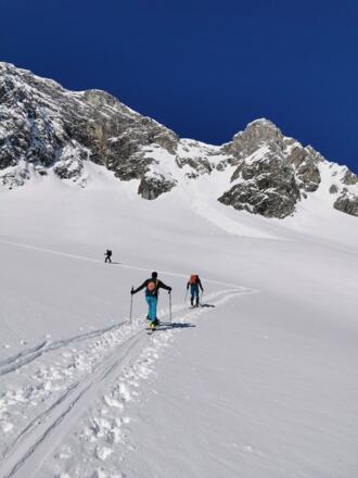 Die tolle Skitour auf diesen beeindruckenden Gipfel ist nur bei sehr sicheren Verhältnissen für erfahrene Skitourengehen möglich. Dafür wird man mit herrlichen Panoramablicken belohnt.