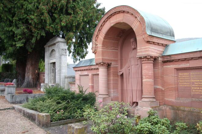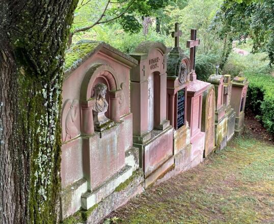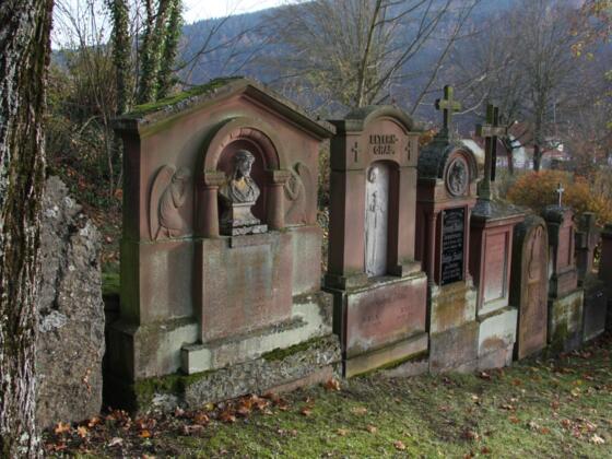 Ehe dann der Weg steil aus dem Ort hinausführt, lohnt ein Blick in den alten Teil des Friedhofs, in dem Steinmetze und Bildhauer prägende Spuren hinterlassen haben.