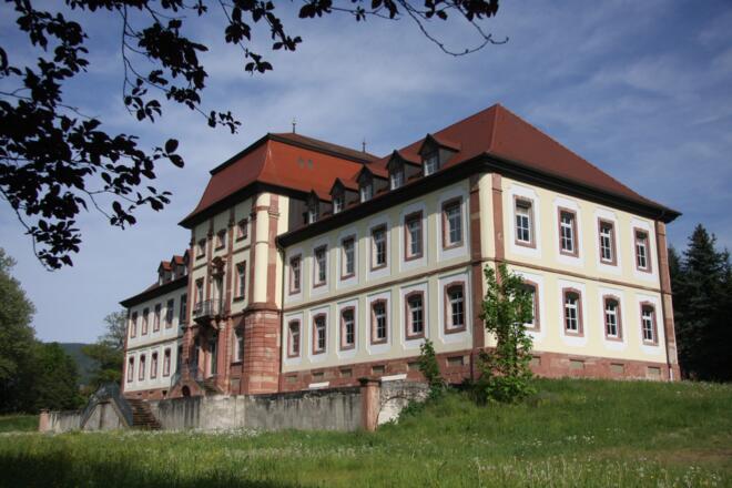 Schon vom Weg aus springt das „Fechenbacher Schloss“ ins Auge, das mit den ursprünglich zugehörigen Ökonomiegebäuden das Ortsbild vom Main aus „beherrscht“. Schloss mit Park harren nach der vollständigen Entkernung und Restauration noch einer angemessenen Nutzung. Die Ökonomiegebäude sind besitzmäßig vom Schloss abgelöst und dienen unterschiedlichen Nutzungen.