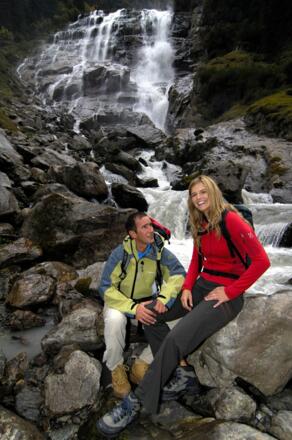 Ab der Bushaltestelle Sulzenau über den Ruetzbach zum Waldweg, der mäßig steil zur Sulzenaualm führt. Während des Aufstiegs zur Alm hat man einzigartige Ausblicke auf den mächtigen Grawawasserfall. Die urige Sulzenaualm lockt mit handgefertigten Schnitzfiguren. Im schönen Talkessel bieten sich imposante Blicke auf den Wasserfall des Sulzanaubaches. Ab hier führt der Steig in Serpentinen über eine Steilstufe hoch zur Sulzenau Hütte, die nahe der Zunge des Sulzenauferners liegt. Variante über den neu angelegten WildeWasserWeg. Die Alpenvereinshütte dient als Stützpunkt für viele hochalpine Touren und Gletschertouren.