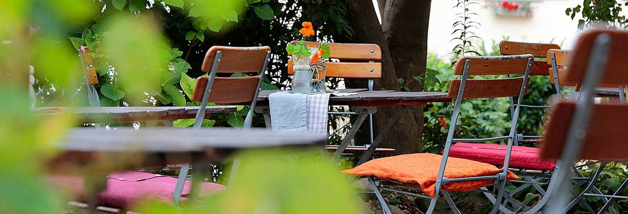 Jenseits des lärmenden Treibens befindet sich das Café Restaurant Eulenspiegel im schönen, alten Fachwerkhaus in der Dorfstraße in Wasserburg am Bodensee.