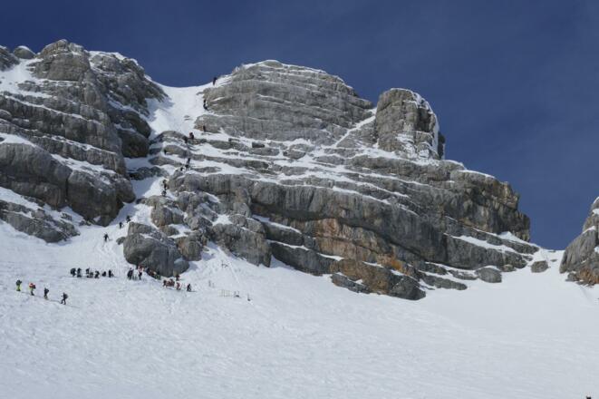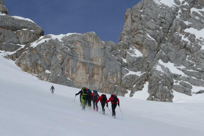 Precenje Dachstaina, od zgornje postaje gondole do Obertraun...