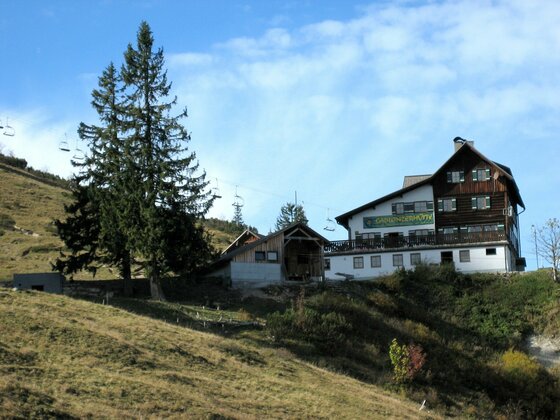 Die beiden Varianten führen uns schließlich zum selben Ort, an die Bergstation Hunerkogel. Von hier sollte man spätestens um 16:00 Uhr starten, um das Etappenziel gut zu erreichen. Wir laufen vorbei am Gjaidstein, wo wir links des Sesselliftes abwärts Richtung Osten gehen. Wir orientieren uns an den farbigen Markierungen auf den Felsen und an den Schneestangen. Auch die „Taube“, ein Steinmandl, können wir als Orientierungspunkt nehmen. An der Markierung 674 ist der Schnee oft noch gefroren, deshalb sollte man hier trittsicher und vorsichtig sein. Außerdem sollte man hier Stöcke zur besseren Sicherung dabei haben und gut auf das Wetter achten, denn auf der hochalpinen Wanderung bis zu unserem heutigen Etappenziel gibt es keinen Unterschlupf. Bei der Feisterscharte folgen wir dem Weg 616 und sind nach einem kurzen, steilen Abstieg beim Guttenberghaus.