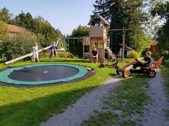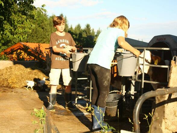 Von Herzen willkommen am Lamplhof! Wir, Bäuerin Daniela, Bauer Georg und unsere Kinder Thomas und Maria, möchten euch auf unserem Ferienbauernhof zwischen Chiemsee und Simssee herzlich willkommen heißen und dafür sorgen, dass ihr euch wohlfühlt und euren Urlaub richtig genießen könnt. Unser voll bewirtschafteter, kinderfreundlicher Bauernhof liegt in ruhiger Alleinlage auf einer Anhöhe mit einem wundervollen Panoramablick. Alleinlage mit Panoramablick zwischen Chiemsee und Simssee Unsere komfortablen und gemütlichen Hof-Chalets, die Nähe zum Chiemsee und zum Simssee, das alles lädt zum Erholen und Entspannen ein, aber auch zu Aktivitäten in der freien Natur, zum Wandern oder Radfahren und zu Ausflügen in die Berge. Kinder fühlen sich bei uns ganz besonders wohl und sind von den vielen Tieren begeistert. Unsere Kühe, Kälber, Hühner, Katzen, Hasen, Kaninchen, die Schildkröten in ihrem Gehege und vor allem unsere Labradorhündin Lina warten auf Streicheleinheiten und freuen sich über jeden Besuch. Wir freuen uns die Urlaubszeit, diese schöne Zeit, mit euch verbringen zu dürfen und wünschen euch einen angenehmen Aufenthalt auf unserem Bauernhof.