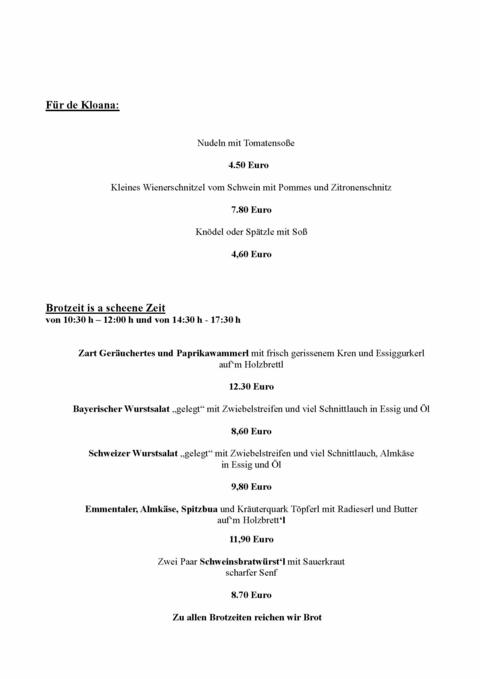 Wir haben für Sie durchgehend geöffnet und bieten Ihnen auch außerhalb unserer Küchenzeit, eine Auswahl an warmen und kalten Brotzeiten.
