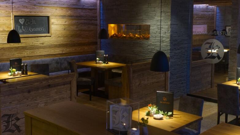 Angrenzend an die Kaminstub‘n ist die Franz Xaver Stub‘n ein weiterer exclusiver Raum für Gesellschaften bis zu 45 Personen. Sie ist als a‘ la carte Wirtsstube oder als komplett reservierbarer Raum ein richtiger Hingucker. Einzigartig integriert – eine Möglichkeit ganz individuell, „Glückwünsche, Danksagungen, Willkommensgrüße“ in Bild und Textform darzustellen.