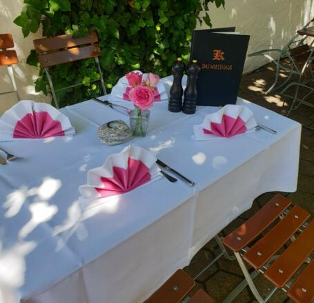 Unter den Kastanienbäumen im Garten, verwöhnen wir Sie auf Wunsch mit Cocktail beziehungsweise Sektempfang und kleinen Snacks, bevor sie mit ihren Gästen im Saal oder einer der Stub‘n Platz nehmen.