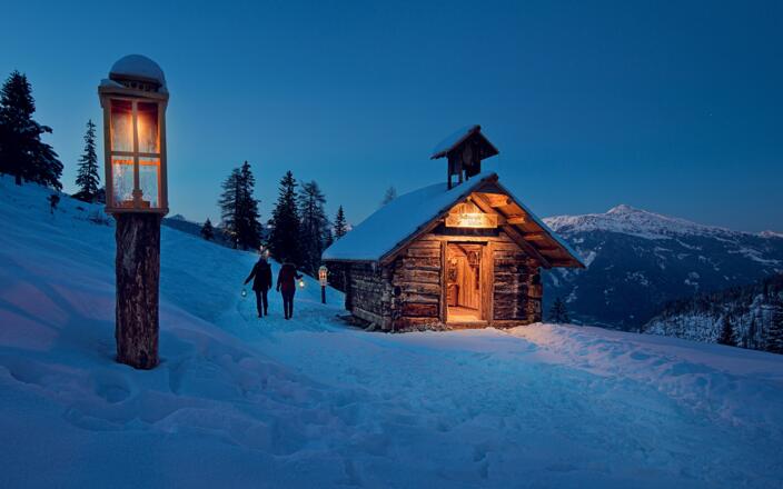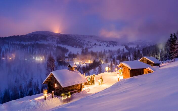 Wetten, dass die Augen Ihrer Kinder mit den Laternen und Fackeln um die Wette leuchten? Der Katschberger Adventweg lädt zu einer Rundwanderung ein, auf der die liebevoll gestaltete Themenwelt zur Besinnlichkeit einlädt. Detailfreudig restaurierte Heustadel und urige Hütten entführen Sie in eine romantische Alpenwelt, wie man sie sonst nur aus Geschichten kennt. Die Teddybärenwerkstatt, in der man mit Hilfe der Engel seinen eigenen Teddy fabrizieren kann, ein Streichelzoo mit niedlichen Eseln, Schafen und Ziegen sowie eine Christkindlwerkstatt dürfen hier selbstverständlich auch nicht fehlen. Winterwandern kann ganz schön hungrig machen. Für den kleinen Imbiss gibt es frisch geröstete Maroni, heiße Ofenkartoffeln und Tee am Wegesrand. Wer den Abend stilvoll ausklingen lassen möchte, steigt in den Shuttlebus und genießt sein Dinner mit saisonalen Delikatessen wie Gans und Glühwein im Alpengasthof Bacher.