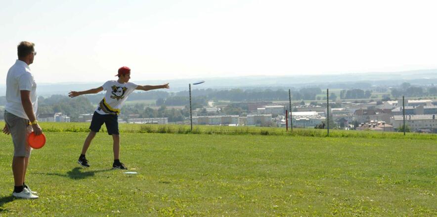 Auf der 18 Loch Discgolfanlage mit trittsicheren Kunstrasenabwurfzonen, hochwertigen Fangkörben und fein gepflegtem Fairway finden die Spieler einen anfängerfreundlichen gesteckten Kurs mit einer ausgewogene Mischung aus langen und kurzen Bahnen.