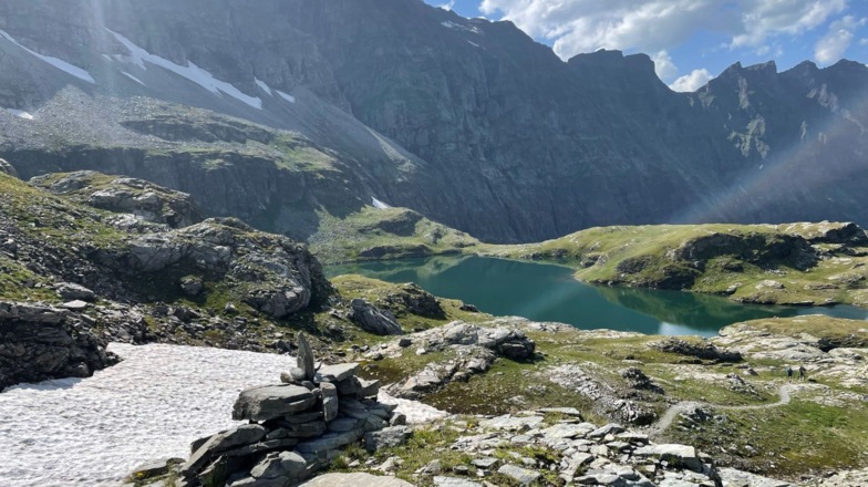 Bein den Übergängen ist auf die Schneelage zu achten. Teilweise bis Mitte Juli Restschnee in den Rinnen.