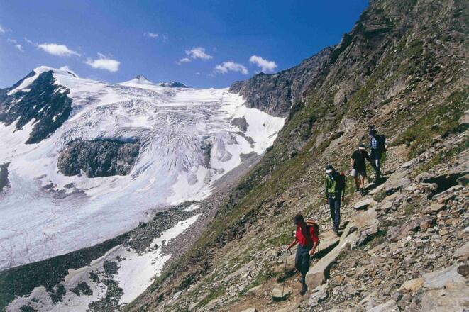 Hochalpine Bergwanderung auf steilen Steigen, die Trittsicherheit und Schwindelfreiheit erfordern. Am Gipfel steht man Aug in Aug mit der faszinierenden Gletscherwelt.