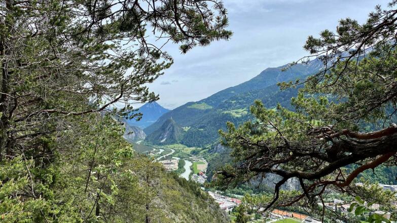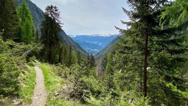 Vorbei am unteren Seewisee, der nach der Memminger Hütte links liegt, führt ein relativ steiler Weg, mit einer kurzen Seilversicherung, zur Seescharte (2.599m) dem Übergang ins Zammer Loch. Von dort geht es ca. 1 Stunde steil bergab. Weiter führt der Weg, vorbei an der Oberlochalm (1.819m) und der Unterlochalm (1.567m), durch den Wald und durch Felsen auf einem schmalen Steig Richtung Zams. Ab dem Burschlboden, einer Grünfläche mit einem schönen Blick über Zams, Landeck und zum Krahberg, führt der Weg in steilen Serpentinen ca. 40 Minuten bis zum Parkplatz des E5-Shuttle. Dieser bringt die Wanderer kostenlost in Zentrum nach Zams und zur Talstation der Venet Bahn.