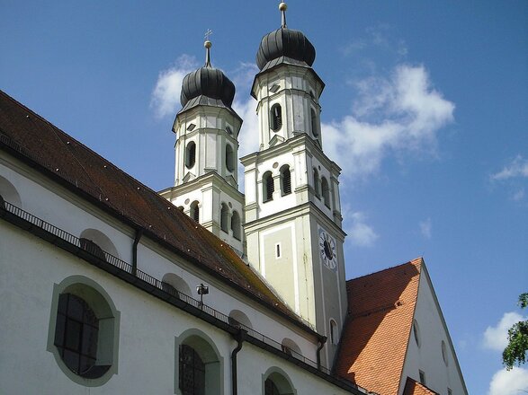 1241 durch Graf Berthold III. von Graisbach gegründet, hatte das ehemalige Zisterzienserinnenkloster seine Blütezeit im 14. Jahrhundert. Im Zuge der Säkularisierung wurde das Kloster im Jahr 1803 aufgehoben. Heute werden die ehem. Klostergebäude als Jugendstrafanstalt genutzt. Die in den Nordflügel des Klosters integrierte Kirche zählt zu den bedeutenden Bauleistungen nach dem Dreißigjährigen Krieg. Das prägnante Turmpaar schaut weit ins Donau-Lechtal hinein. Im Gegensatz zum ansonsten eher schmucklosen Äußeren, beeindruckt die prächtige Innenausstattung. Stilgeschichtlich einmalig sind die Stuckdekorationen (1658 – 1662) von Konstantin Pader. Eine weitere Besonderheit stellen darüber hinaus auch die Stuckmarmoraltäre (1705/07) von Dominikus Zimmermann dar. Die reich verzierte, heute noch bespielbare Orgel (1683) stammt aus der Werkstatt des Nördlingers Paul Prescher.