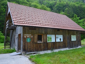 Parkplatz Scheiblingau mit großzügiger Infohütte und WC´s vor Ort