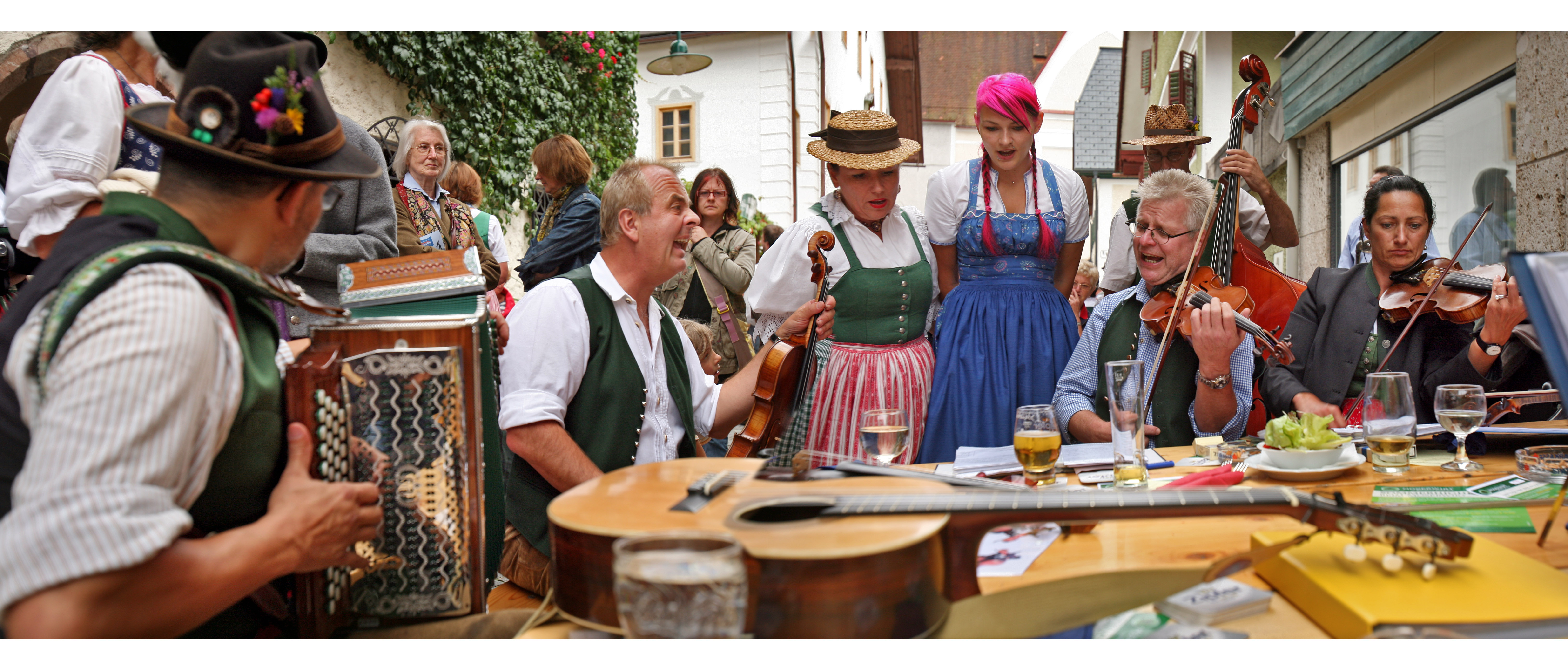 Genieße diese tolle Atmosphäre! Spielt das Wetter nicht so mit, wird in den umliegenden, gekennzeichneten Lokalen gegeigt und gefidelt.