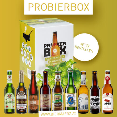 | Preisinformation | Teilnahme an der virtuellen Bierverkostung KOSTENLOS! Probierbox erhältlich bei den Brauereien, bei den Tourismusbüros in Geinberg und Ried, in allen Maximärkten in Oberösterreich sowie Anif oder Online im Webshop. |