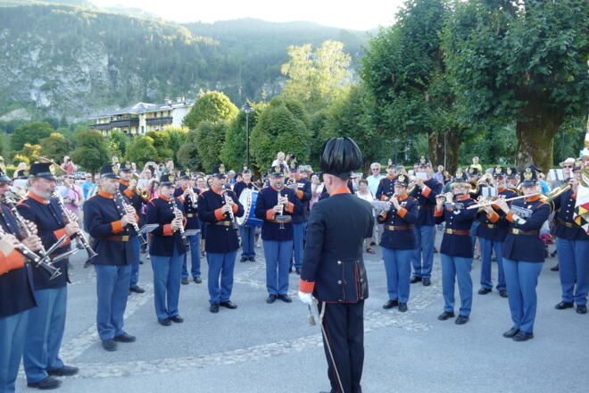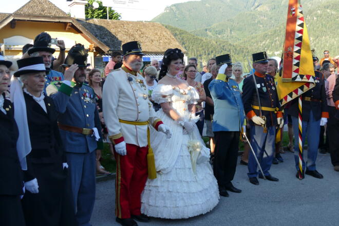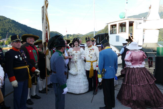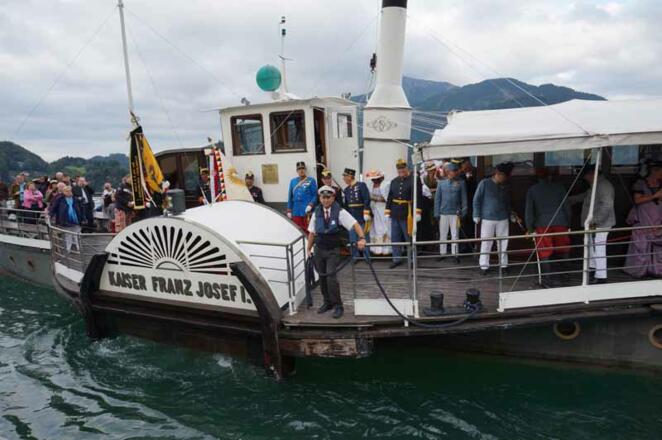 - 18:30 Uhr | Empfang von „Kaiser Franz Josef I“ sowie Abordnungen von Traditionsvebänden an der Schiffsanlegestelle St. Gilgen durch die Rainermusik Salzburg.
