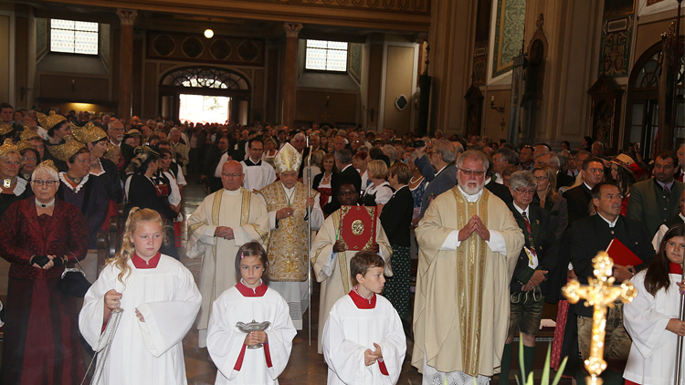 Heilige Messe zelebriert S. Em. Kardinal László Német SVD inmusikalischer Begleitung der St. Floriani Sängerknaben.