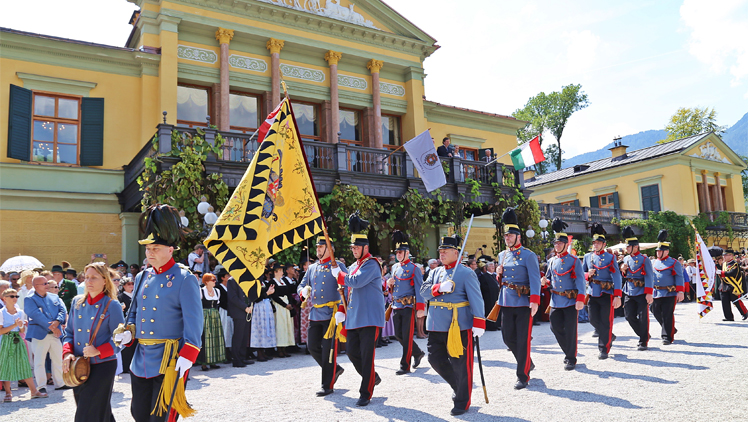 Antreten im Kaiserpark, Dank des Generalkommandierenden an SKH-Erzherzog Markus Salvator von Österreich, St. Floriani Sängerknaben, Ehrensalut, Abspielen der Volkshymne, Abmarsch mit Defilierung, Empfang in und vor der Kaiservilla / kaiserliche Stallungen