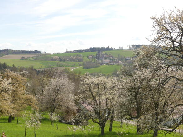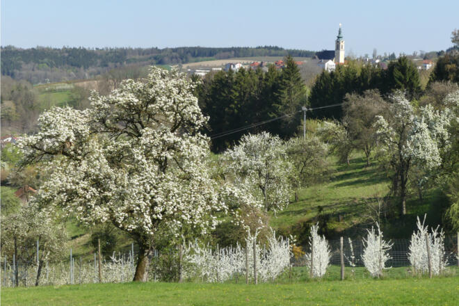 Zur Zeit der Kirschblüte ist die Region um Scharten landschaftlich besonders attraktiv, die sanfthügelige Landschaft mit den vielen Obstbäumen und die kulinarischen Angebote der Schartner Höfe und Betriebe laden zum Wandern und Genießen ein.