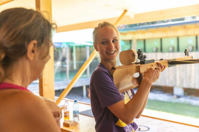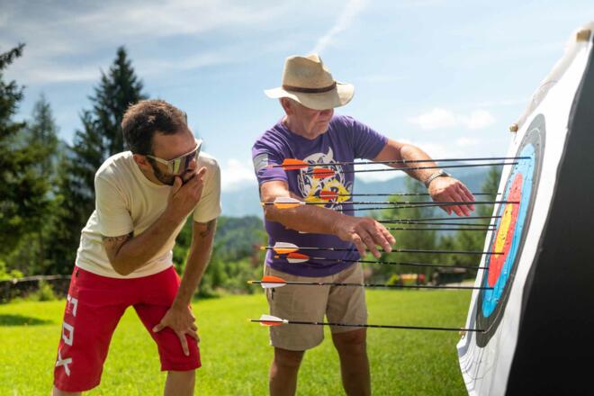 Es gibt keine Zeitmessung, dafür Kontrollpunkte und Stationen mit lustigen Geschicklichkeitsbewerben wie die Deuter Rucksack-Challenge, Nageln, Mini-Armbrust- und Bogenschießen, bei denen man Wertungspunkte sammeln kann.