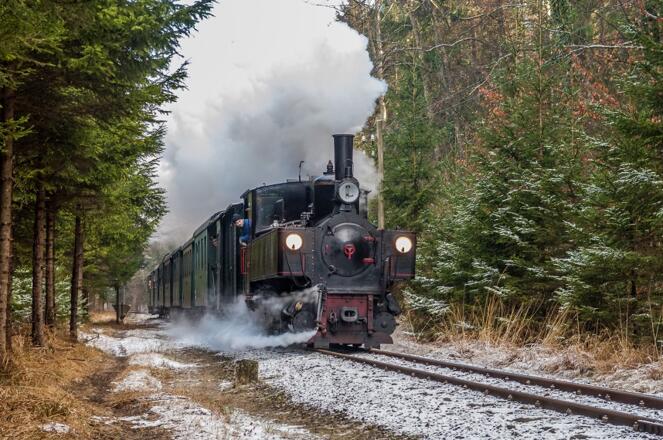 Unternehmen Sie eine romantische Fahrt mit der alten Dampflok durch